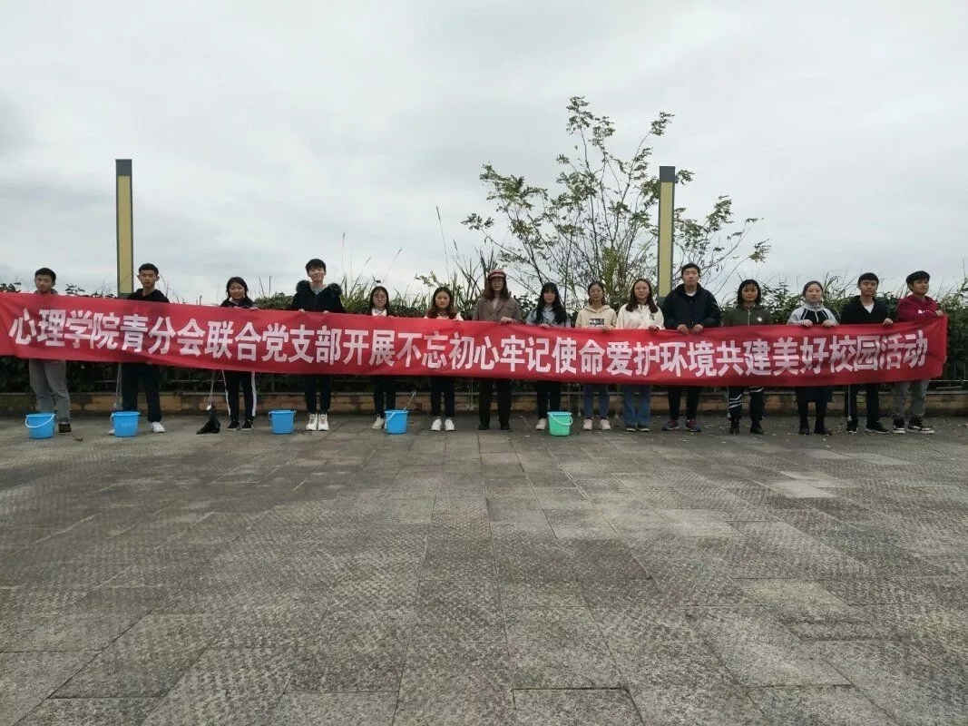 心理学院青分会携手本科生联合党支部开展“不忘初心、牢记使命—爱护环境共建美好校园”活动