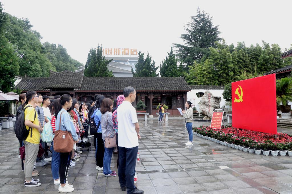 师生们参观了王若飞故居,在王若飞故居陈列馆广场,副院长潘运主持开展了“不忘初心强党性,牢记使命当先锋”主题教育实践活动,院党委书记杨建原带领全体党员面对党旗,重温入党誓词。接着,2018级研究生党员肖寻作了“不忘初心,牢记使命——纪念中国共产党成立98周年”主题教育发言,她说,在建党98周年前夕,我们在这里共同缅怀革命先烈,重温入党誓词,明确中国共产党人的初心和使命。作为新时代的青年党员,我们应当坚定理想信念,勇于担当历史使命,在学习中锤炼品格,奉献祖国,服务人民。作为心理学专业的一名学生,一方面要认真学习专业知识,打牢理论基础,并将理论知识运用到实际生活中,在实践过程中找出自己的不足,才能有针对性地提升,另一方面要提高党性修养,周期性地阅览与党有关的书籍,增强“四个意识”,坚定“四个自信”,向优秀党员学习,主动投身到祖国所需要的地方,贡献出自己的一份力量。