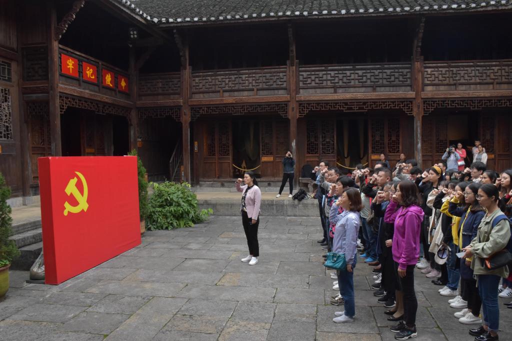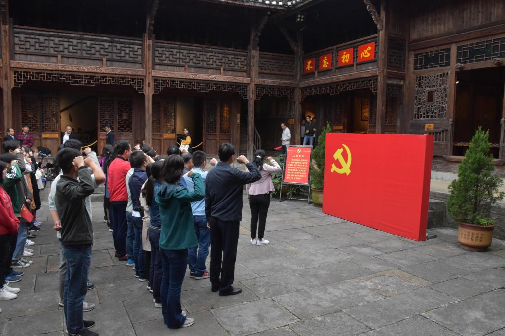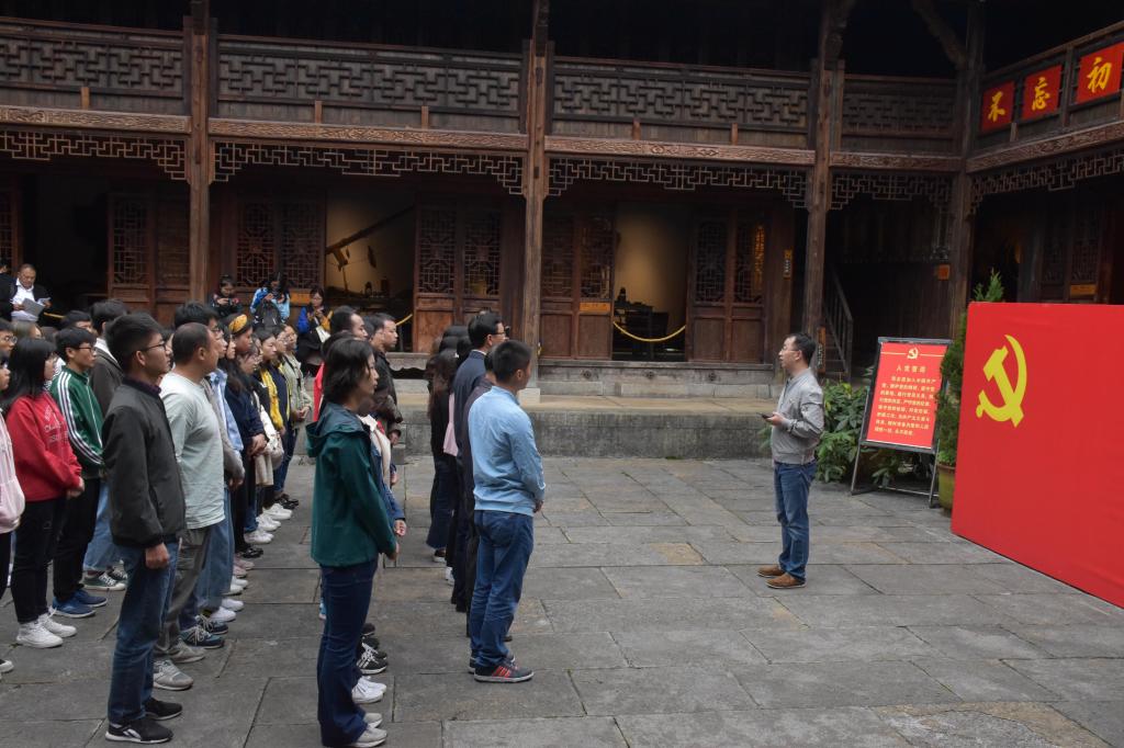 在猴场会议会址里,学院党委书记杨建原带领全体党员面对党旗,开展了重温入党誓词活动,副院长罗禹作了“不忘初心、牢记使命”主题发言,他说,党的十九大提出教育事业是建设教育强国,实现中华民族伟大复兴的基础工程,作为教育工作者,必须紧紧围绕习近平总书记提出的培养什么人、怎样培养人,为谁培养人的要求,完成好立德树人的根本任务,这是作为一名人民教师的初心和使命。首先,教师教书必先育人,要把培育社会主义建设者和接班人作为我们教育的根本任务;其次,教师要努力提高自己的专业水平,创新教学改革,争做教学能手;第三,转变教育教学培养方式, “以教为中心”转变为“以学为中心”,注重培养学生的学习能力。作为心理教师更要根据学生身心发展特点,培养健全的人格,要让学生成为一个有幸福感、有社会责任感的人;第四,教师要成为学生成长的引路人,德高为师,身正为范,注重塑造学生良好品格,用自己的人格力量来引领、感染学生。