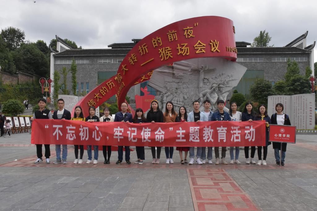 根据《贵州师范大学委员会关于开展“不忘初心、牢记使命”主题教育实施方案》的要求,9月21日上午,贵州师范大学心理学院党委组织师生党员前往瓮安猴场会议革命历史纪念馆开展党性教育和革命传统教育。心理学院师生党员共计60余人参加活动。