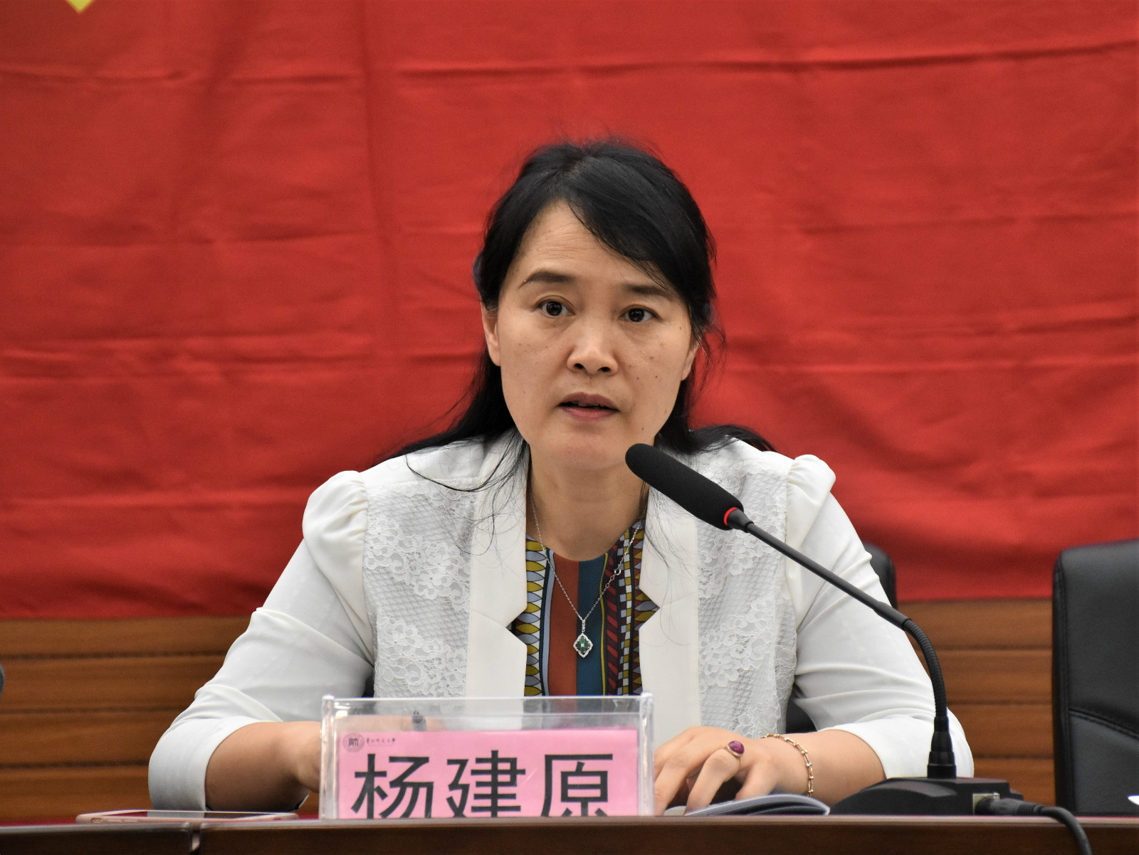 杨建原作总结发言,她说,今天我们在这里隆重聚会,纪念中国共产党建党98周年,组织新党员入党宣誓、老党员重温入党誓词,表彰先进集体和先进个人,目的是通过回顾历史、总结工作、表彰先进、明确使命。首先代表学院党委向全院党员致以节日的问候,向受到表彰的先进集体和个人表示最热烈的祝贺,向全院教职工生一直以来对学院工作的关心、理解、支持与勤奋工作表示衷心的感谢!她说,刚刚成立的心理学院从成立之初就站在了一个较高的起点,面临各种的竞争压力与挑战,当前,党中央提出了“不忘初心、牢记使命”主题教育的号召,全体共产党员如何结合工作实际创造性地开展工作,“守初心、担使命、找差距、抓落实”,在推动学院发展上真正取得实效,为此她向师生党员提出几点希望:一是不忘初心,坚定理想信念,全体党员师生要进一步坚定对马克思主义的信仰、对中国特色社会主义的信念,传承红色基因,增强“四个意识”、坚定“四个自信”、做到“两个维护”,师生党员要自觉践行社会主义核心价值观,教师要坚持立德树人为己任,争做“四有”好老师;二是牢记使命,发挥模范带头作用,作为中国共产党的一员,肩负社会责任,要随时谨记自己在党旗下的庄严而神圣的承诺,严守党的纪律,履行党员义务,严格要求自己,恪尽职守,敢于担当,发挥一名共产党员应有的先锋模范作用;三是找准差距,对表对标,支部书记要认真履职,组织好各支部党的理论学习,深入开展革命传统教育、形势政策教育、先进典型教育和警示教育,认真落实好“三会一课”、主题党日等制度,保证基层党组织坚强有力;四是围绕中心抓党建,抓好党建促发展,围绕心理学院当前师范专业认证工作,全院教职工生都要积极主动作为,保质保量完成自己的工作职责,特别是党员师生,要继续发挥学院党组织特别能战斗、特别能吃苦、特别能奉献的优良传统,在重大工作面前以身作则、率先垂范,学院党委也要善于发掘身边先进典型,弘扬正能量,树立正面典型;五是希望各党支部结合工作实际,创造性地开展特色主题党日活动,以良好的精神面貌与实际行动庆祝中国共产党的98岁生日。