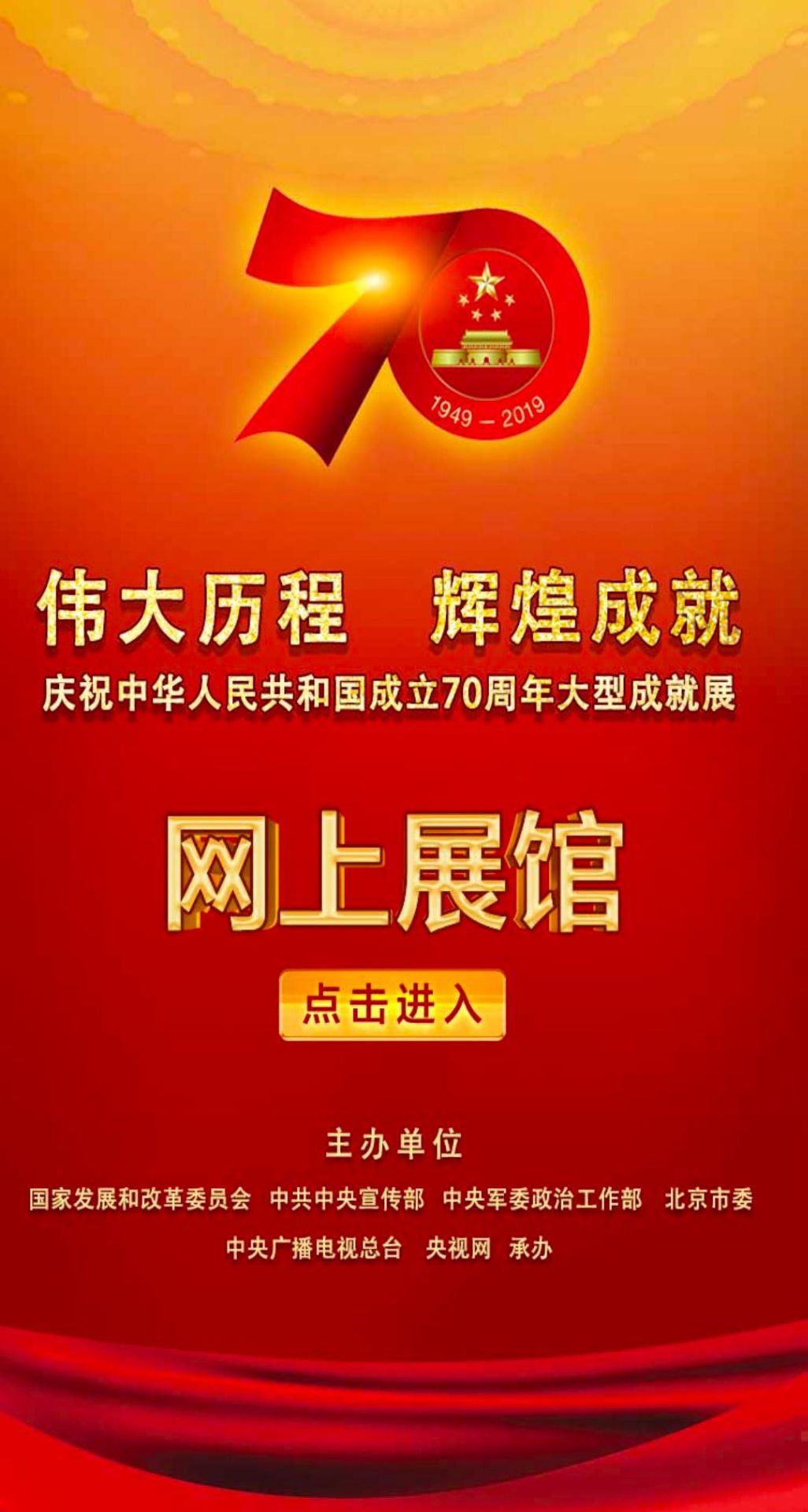 今天,参观了庆祝中华人民共和国成立70周年大型成就展网上展馆。身临其境感受了这七十年来,中国共产党带领中国人民从站起来到富起来、强起来的辉煌历程,参观完后心情无比激动,感慨这七十年的砥砺奋进、七十年的沧桑巨变。