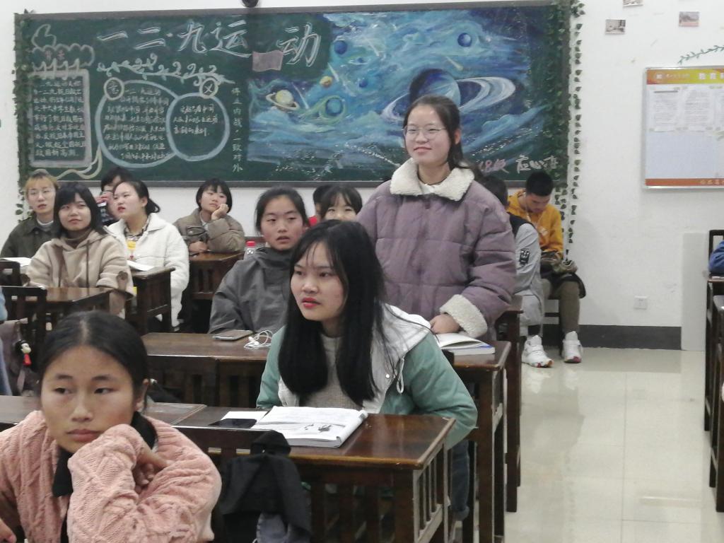 12月15日,心理学院2018、2019级应用心理学班团支部在学院楼各班教室开展了纪念“一二·九”爱国运动八十周年主题团日活动。本期主题团课分别由18级应用心理学班班长何春艳、19级团支部书记陈胜寒主讲,18、19级应用心理学团支部全体同学到场参加。
