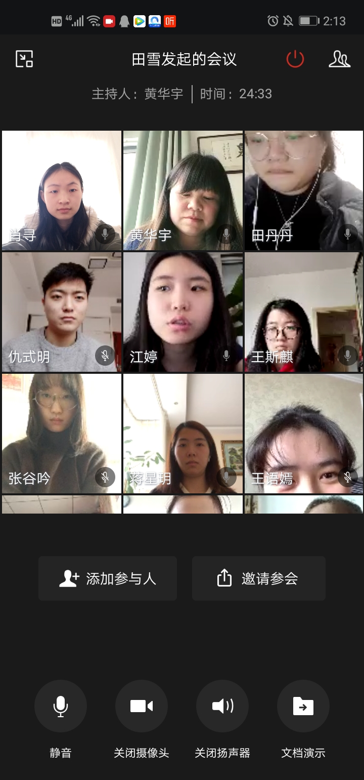 交流发言结束,黄华宇对全体党员提出要求,第一作为研究生党员,要坚决贯彻落实党和国家重要指示精神,进一步强化“四个意识”、坚定“四个自信”、做到“两个维护”,在日常生活中努力做到敢作为、敢担当,积极配合当地政府和学校的各项安排,在防控疫情阻击战中做出自己的积极贡献。第二,要充分利用好疫情防控期间的时间,好好充充电,读读书,锻炼身体,学习技能,建议和导师、同学们开展线上的学习交流,为发表科研论文和撰写毕业论文做好充分准备。