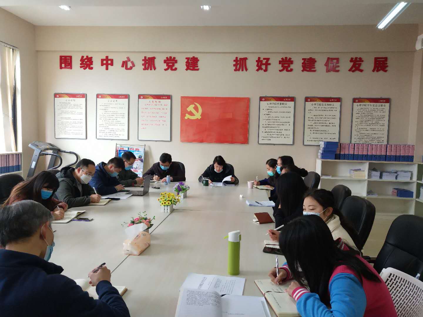 4月7日上午,心理学院在花溪校区党员活动室召开党委理论学习中心组扩大会议,学院党政班子、党支部书记、科级以上干部、系主任参会,会议由杨建原主持。
