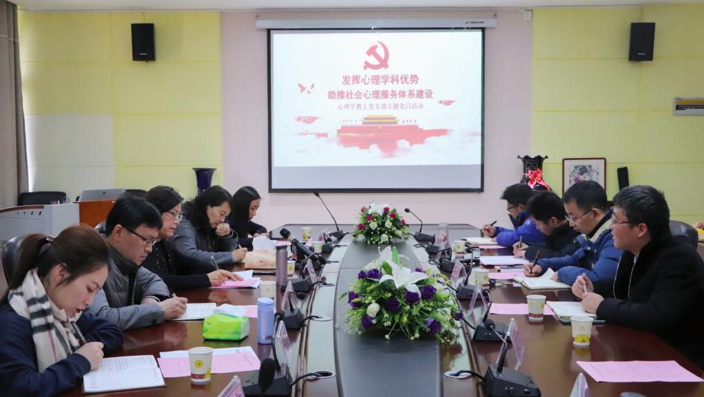 12月23日下午,心理学院心理学教工党支部在学院三楼会议室开展了“发挥心理学科优势,助推社会心理服务体系建设”主题党日活动。校党委副书记银熙惠莅临现场指导支部活动。心理学院党委书记杨建原、院长潘运、副书记饶蕾、学校党委组织部、党校办公室主任王媛君同志参加了此次主题党日活动。活动由心理学教工党支部书记罗禹主持。