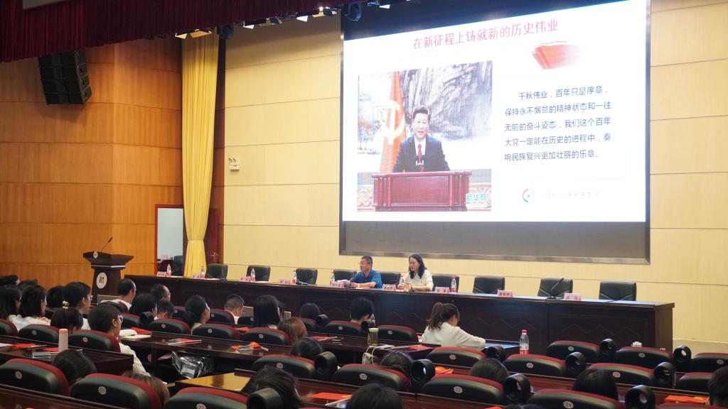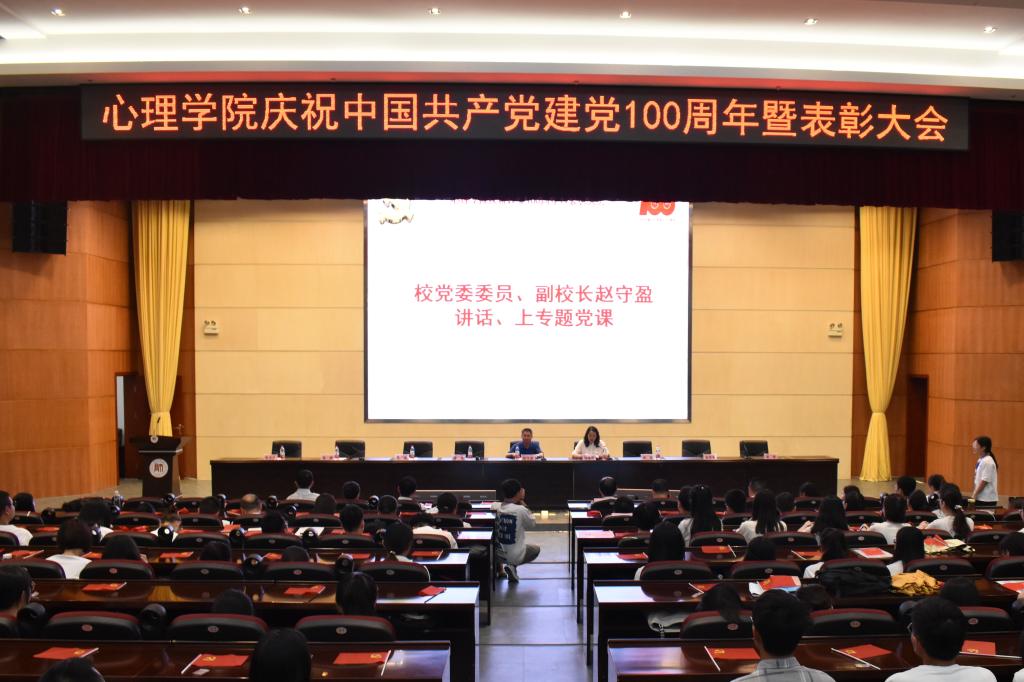 为庆祝中国共产党成立100周年,6月25日,校党委委员、副校长赵守盈在学校国际会议中心一楼学术报告厅,以“铭记党的百年奋斗史,勇担新时代历史使命”为题,给心理学院师生上了一堂生动的党史学习教育专题党课。