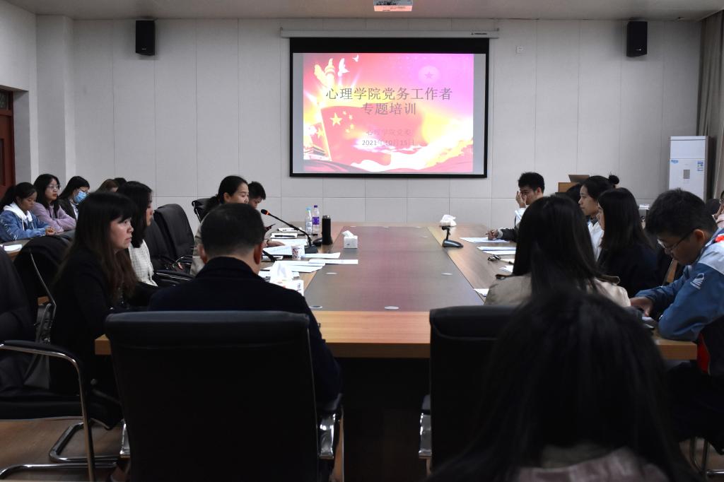 10月15日下午,心理学院党委在花溪校区格物楼三楼会议室召开全面从严治党专题会议。学院党委书记杨建原,院长潘运,党委副书记饶蕾,副院长罗禹,党委委员黄华宇,各党支部书记及支部委员参会。会议由杨建原主持。