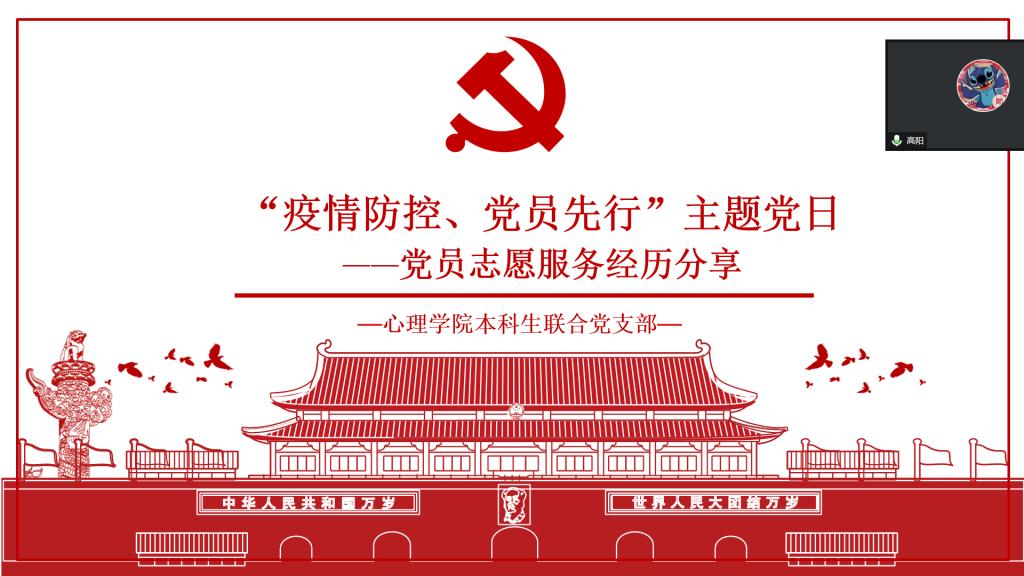 2022年9月27日,心理学院本科生联合党支部,利用腾讯会议组织召开防疫志愿服务经历分享会,党员们踊跃发言,回忆抗疫志愿服务以来自身经历,发表感悟。