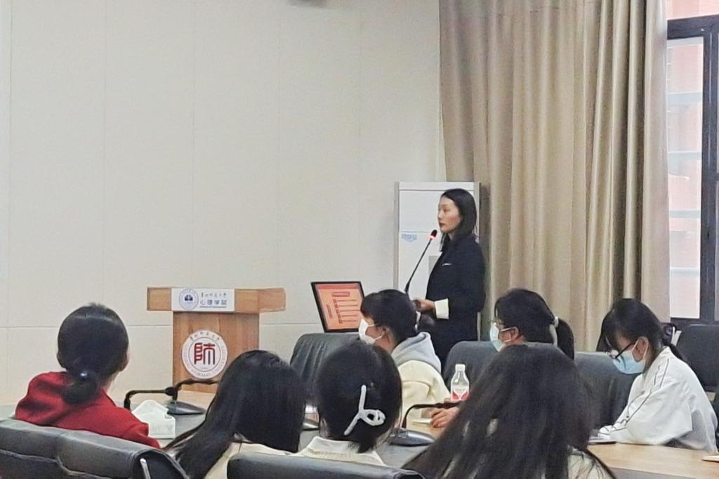 11月8日下午,心理学院党委副书记饶蕾在脑成像中心三楼会议室为学院举办的党支部书记和党务工作者培训班学员作题为“认真学习党章 严格遵守党章”的专题讲座。