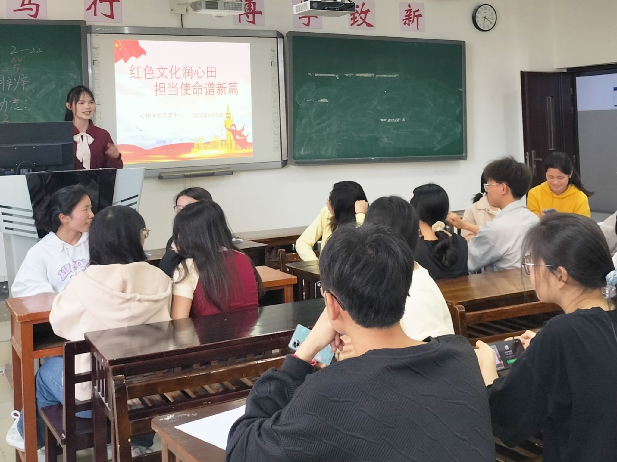 为深入学习伟大的建党精神,弘扬崇高的爱国主义精神,5月19日,心理学院党建中心在学院2207教室开展主题为“红色文化润心田,担当使命谱新篇”的“双学”活动。心理学院各班级学生代表参加本次活动,活动由党建中心办公室部长韦芳主持。