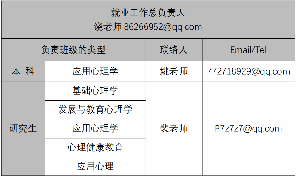 心理学院2024届毕业班就业工作联络人