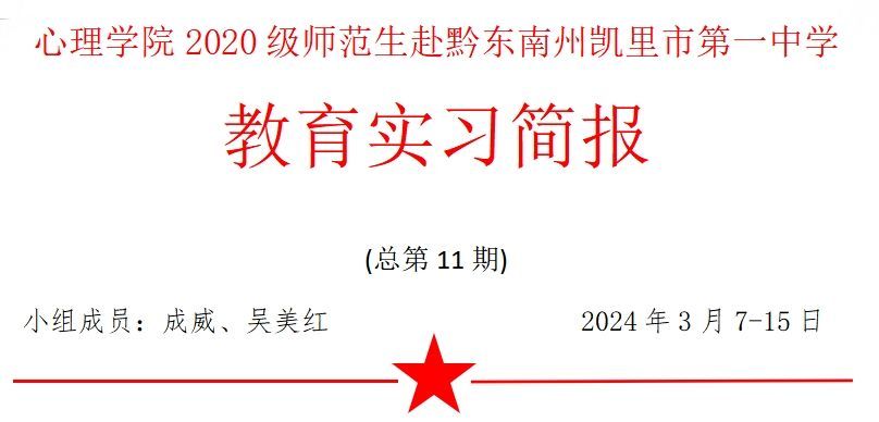教育实习是师范生的一门重要课程,也是我们从学生到老师角色转换的一个非常重要的环节。为提高师范生教学技能、育人能力以及锻炼课堂技能。满怀着期待与愉悦心情,小组成员2人于3月6日前往凯里市第一中学开启实习生活。