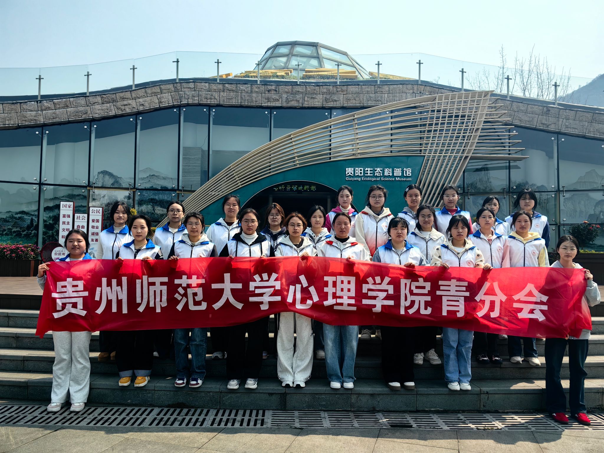 为引导学生弘扬雷锋精神,培养社会责任感,争做新时代优秀青年。心理学院青分会于2025年3月22日在贵阳生态科普馆组织开展了名为“‘绿’见未来”生态科普志愿活动,本次活动共有27名青年志愿者参与其中。