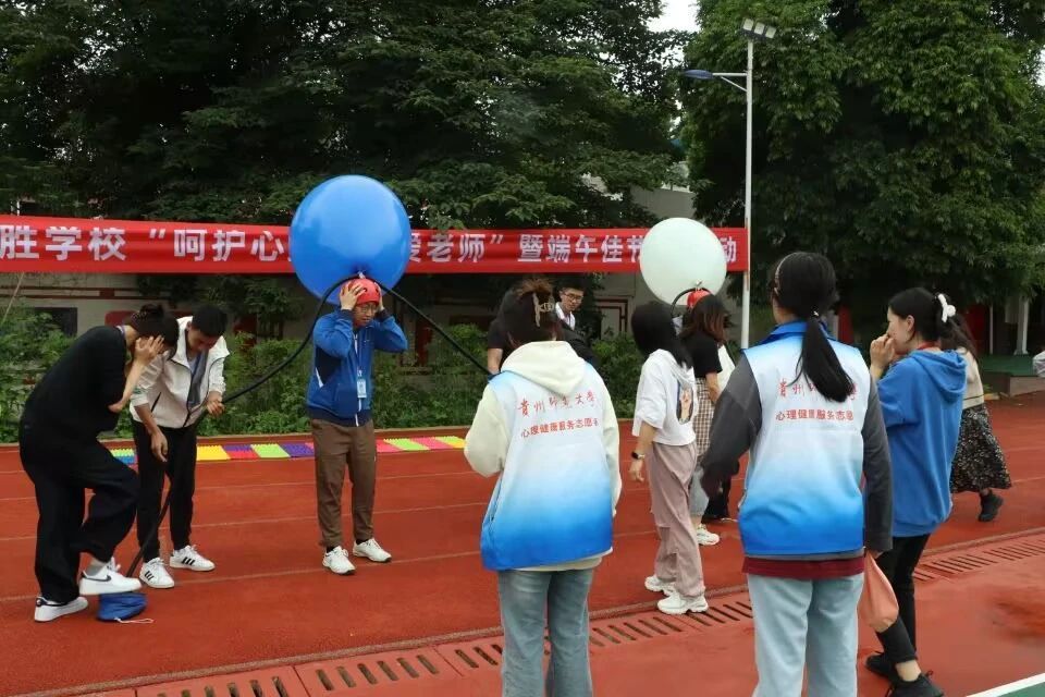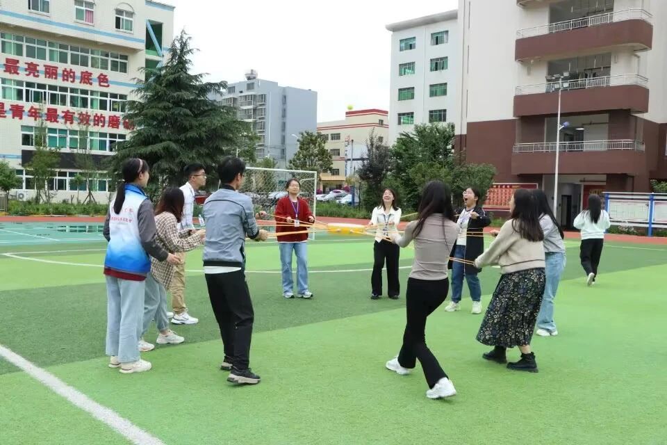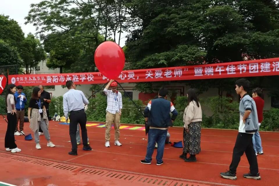活动伊始,郑老师通过“口是心非”项目活跃现场气氛,带动了大家参与活动的积极性。在“按摩操”活动中,老师们配合郑老师的口令,在一片欢声笑语声中放松身心,增进情谊。随后全体老师被分成两个小组,活动以小组的形式展开,先后组织开展了“击鼓颠球”和“头顶开花”两个项目。在最后的环节中,老师们踩爆了气球,象征着释放压力,放飞心情,伴随郑老师作总结寄语:希望老师们把爱和关怀传递给学生的同时,也要记得放松自己,以昂扬向上的积极心态投入到工作生活之中,收获教师的幸福人生!活动至此落下帷幕。