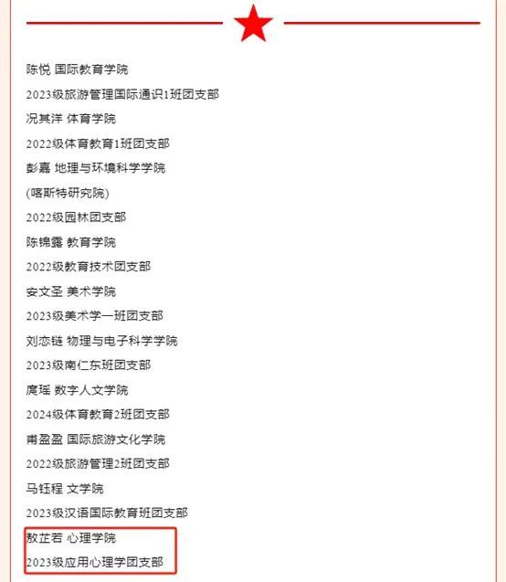 喜报|心理学院2023级应用心理学团支部荣获“十佳团支部”称号