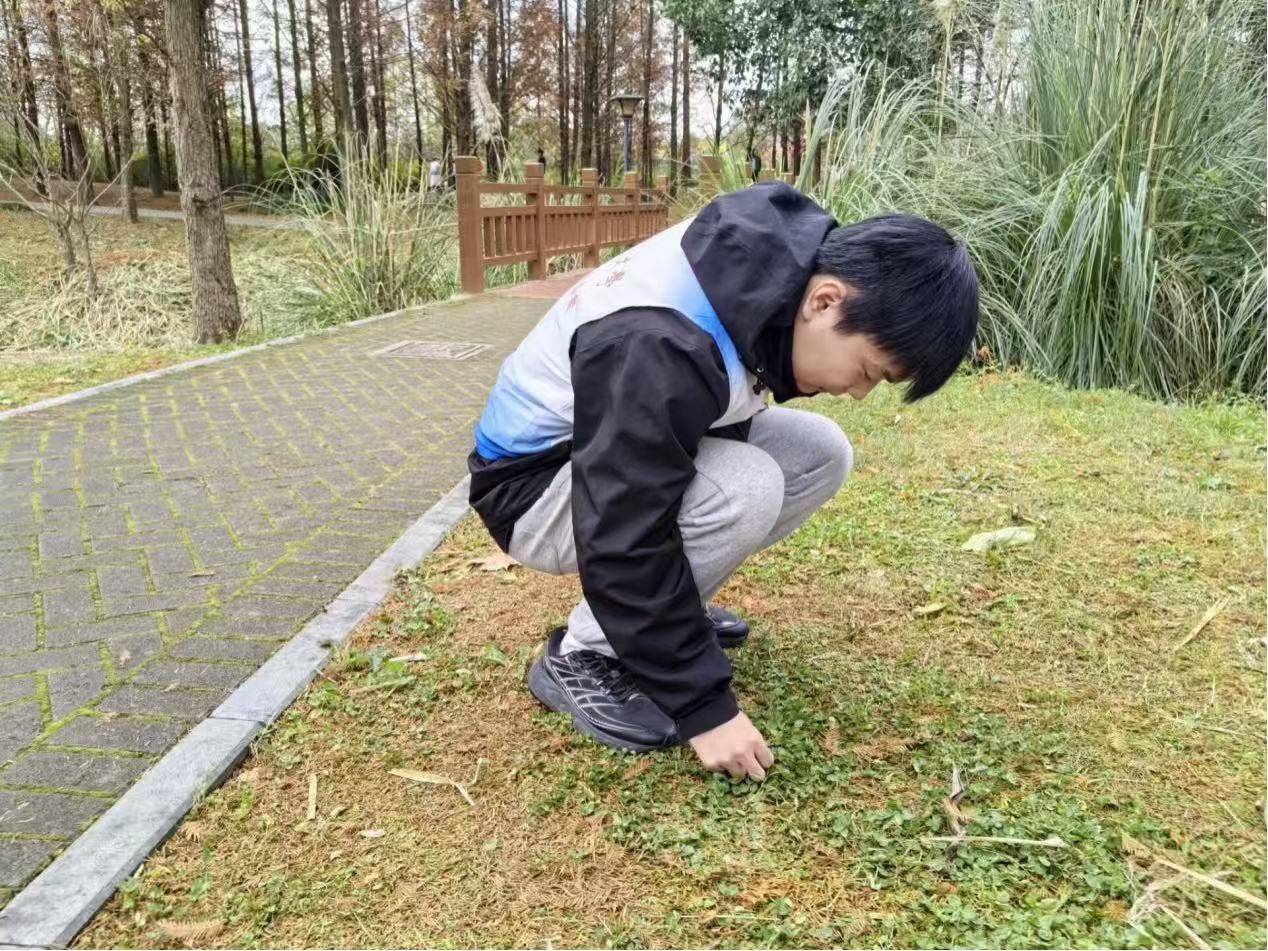 活动伊始,科普馆负责人将志愿者们合理分组,带队深入林间开启植物探索之旅。期间,志愿者们既学习植物知识,又携带垃圾袋清理并分类林间垃圾,将其带离现场。寻叶环节后,各组在一分钟分享环节依次展示收集到的五色叶片,交流环保心得与所学知识,现场互动积极。志愿者全程协助维持分享秩序,保障了各环节的高效推进。
