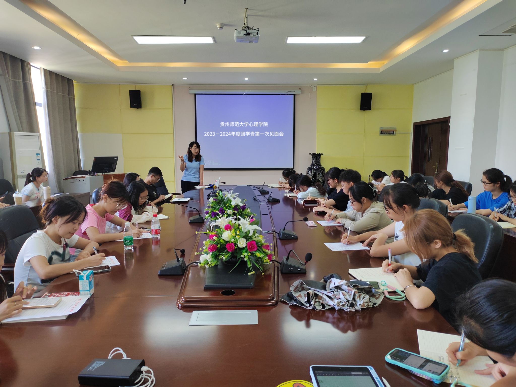 9月25日中午,心理学院团委于花溪校区学院楼2302会议室召开了2023-2024年度团学青第一次见面会议。心理学院党委副书记饶蕾,团委书记高阳,事务部指导老师姚成奎出席会议,团委学生会、青分会全体成员参会,会议由团委书记高阳主持。