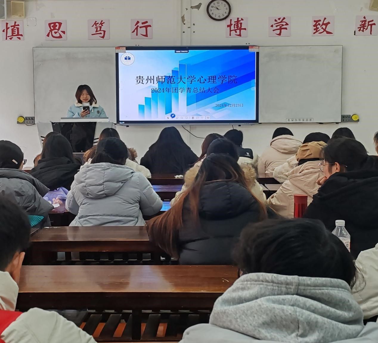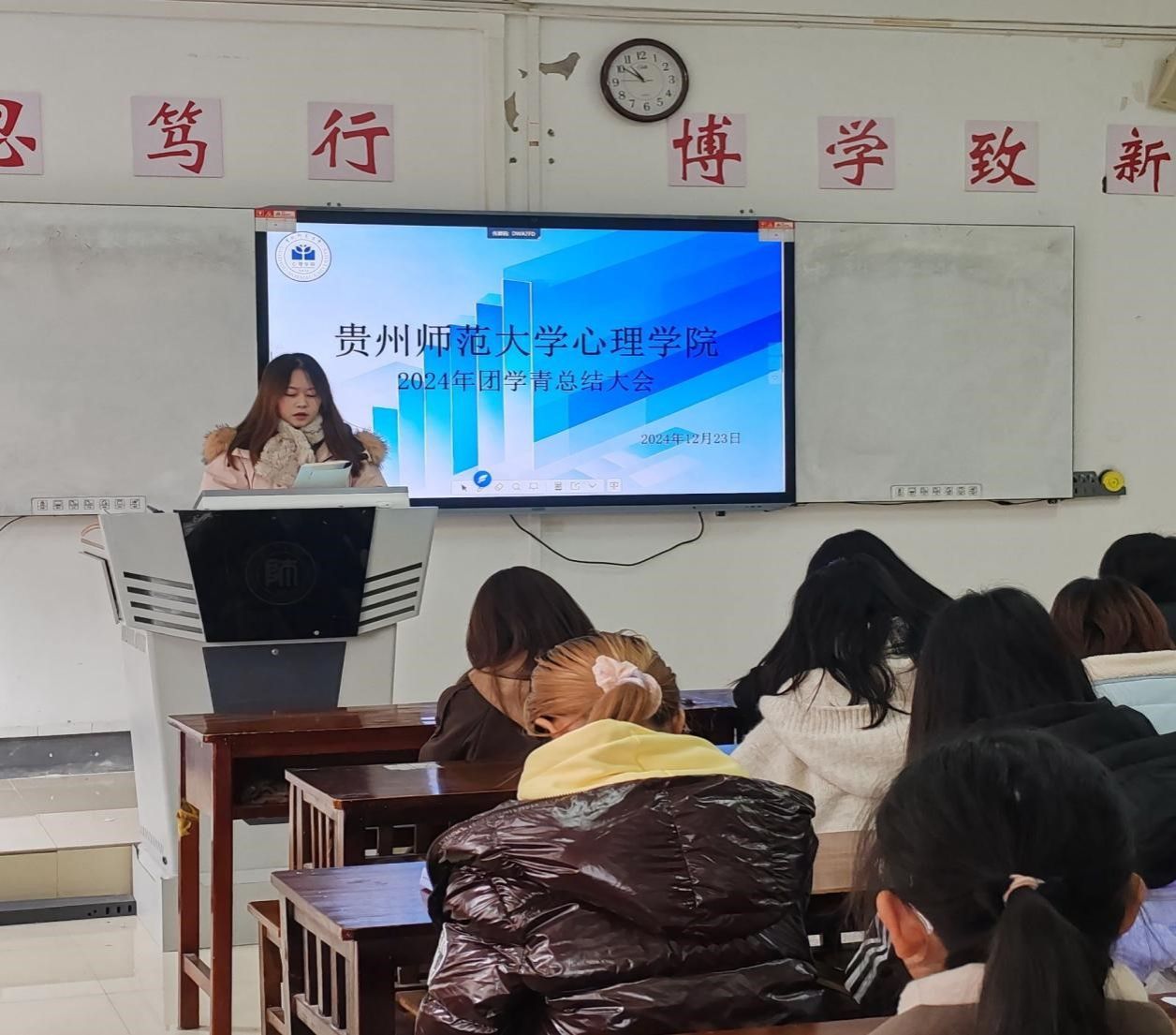 12月23日中午,心理学院团委于学院楼2205教室召开了2024年工作总结大会。会议由院团委书记高阳主持,团委、学生会、青分会的全体成员参会。